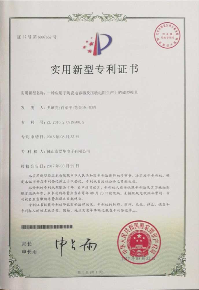 佛山市皓華電子有限公司成立于一九九三年,是一家生產全系列高、中、低壓、安規瓷介電容器,壓敏電阻器,獨石電容器的生產廠家。產品廣泛應用于IT、通訊、家電、儀器儀表、充電器等設備中。公司員工近三百人,其中有多名本科及碩士學歷……